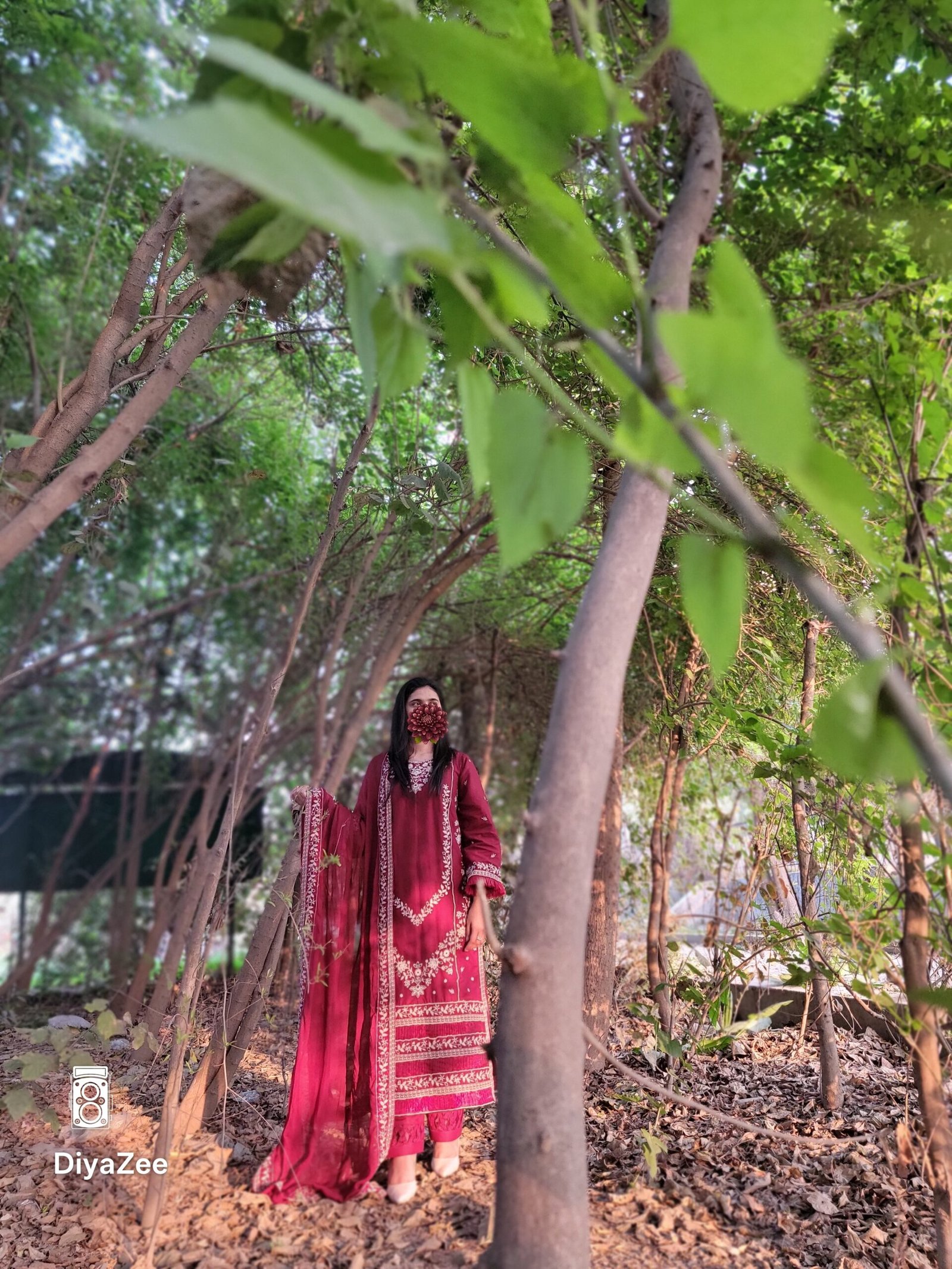 1– Beautiful maroon colour cotton suit with detailed white embroidery on the front and sleeves.