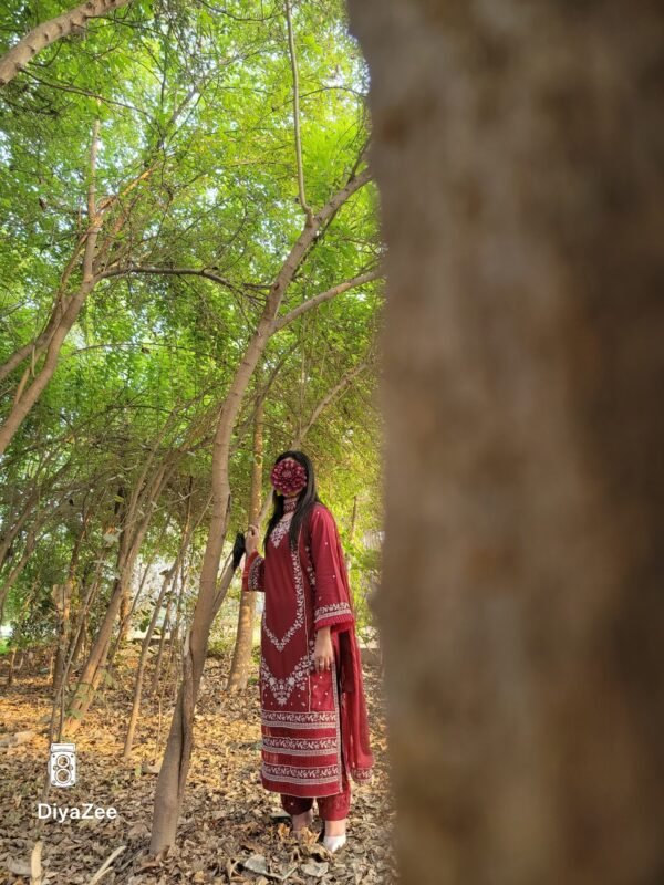 Just received my dress and I’m in love with it 😍 The mehroon shade is so rich and the white embroidery makes it look so graceful. It looks even prettier in real life. Highly satisfied. Thank you!”